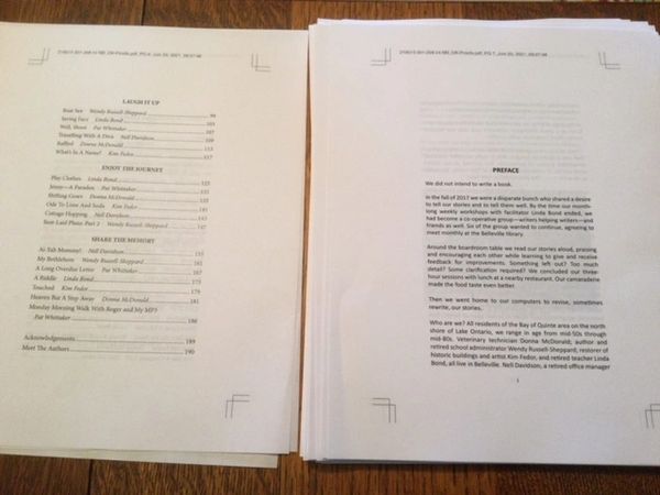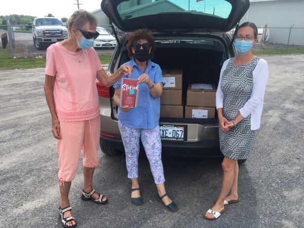 Meeting during Covid at The County Emporium in Carrying Place. Going over our stories.